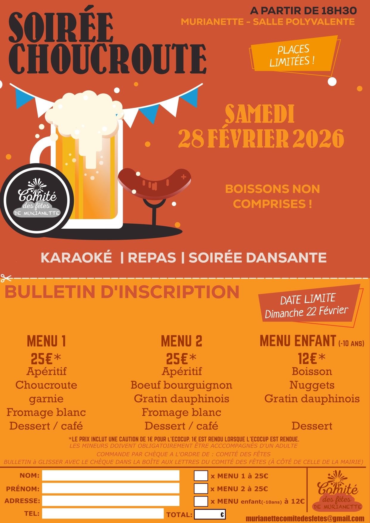 Réservation obligatoire car les places sont limitées par mail à l’adresse suivante murianette.ape@gmail.com