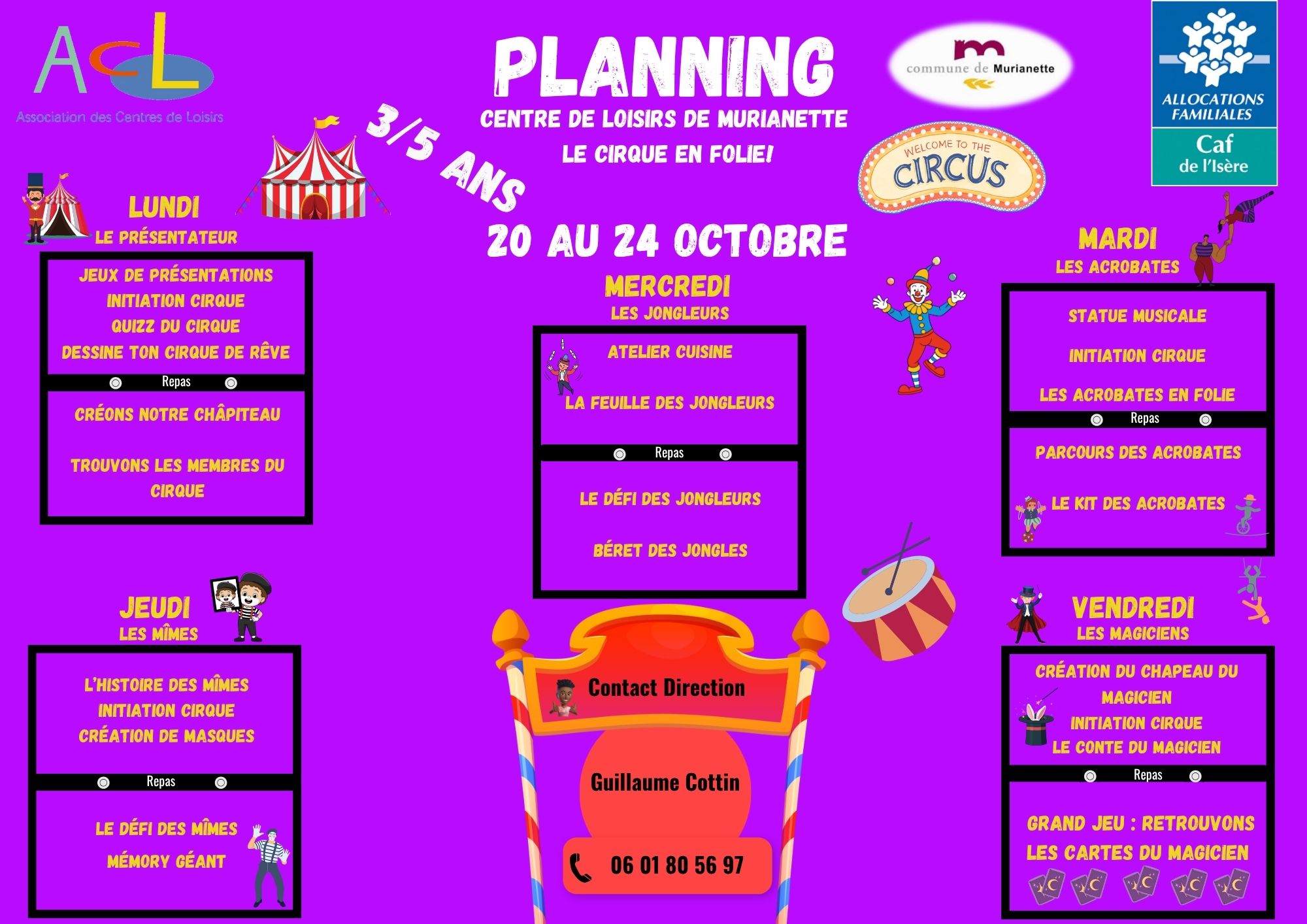> Semaine du 20 au 24 octobre : initiation au cirque pour les 3-5 ans et au self défense pour les 6-12 ans.