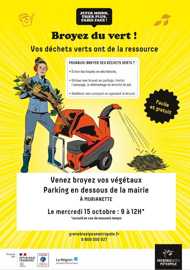 La commune de Murianette en collaboration avec la métropole de Grenoble organisent un stand broyage sur la commune.
